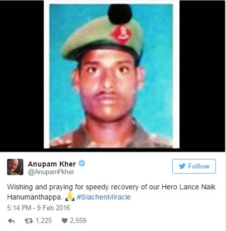 హనుమంతప్పకు దేశ వ్యాప్త ప్రార్ధనలు.. ప్రముఖుల ట్వీట్లు.
