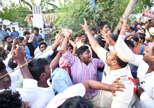 వైసీపీ శ్రేణుల రాళ్ల దాడితో గుంటూరు జిల్లా దుగ్గిరాల మండలం తుమ్మపూడి రణరంగమైంది. హత్యాచార బాధితురాలి కుటుంబాన్ని పరామర్శించేందుకు టీడీపీ జాతీయ ప్రధాన కార్యదర్శి నారా లోకేశ్ గురువారం సాయంత్రం తుమ్మపూడి వెళ్లారు. టీడీపీ వారితో మంగళగిరి ఎమ్మెల్యే ఆళ్ల రామకృష్ణారెడ్డి అనుచరులు వాగ్వాదానికి దిగారు. వారి మధ్య తీవ్ర వాగ్వాదం జరిగింది. పరస్పరం తోసుకున్నారు. ఒక్కసారిగా రెచ్చిపోయిన వైసీపీ కార్యకర్తలు రాళ్లదాడికి దిగడంతో పరిస్థితి ఉద్రిక్తంగా మారింది.