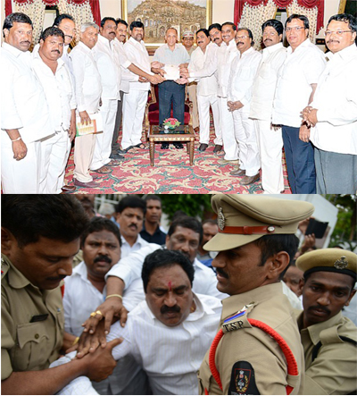మరోవైపు తలసాని శ్రీనివాస్ యాదవ్ రాజీనామా పై తెలంగాణ తెదేపా నేతలు నిన్ననే గవర్నర్ కు ఫిర్యాదు చేశారు. ఈరోజు తలసానిని తెలంగాణ మంత్రి వర్గం నుంచి తొలగించాలని కోరేందుకు టీడీపీ నేతలు ఈ స్పీకర్ నివాసానికి వెళ్లారు. కానీ వారిని పోలీసులు అడ్డుకోవడంతో స్పీకర్ ఇంటి ముందు ఉద్రిక్తత ఏర్పడింది. ఈ సందర్భంగా టీడీపీ నేత ఎర్రబెల్లి మాట్లాడుతూ.. తలసాని రాజీనామా చేసి 6 నెలలు అవుతున్నా స్పీకర్ ఎందుకు ఆమోదం తెలపలేదని.. తలసాని తెలంగాణ ప్రభుత్వం కలిసి నాటకాలు ఆడుతున్నారని.. ఇక ఏ ఎన్నికల్లో తలసాని పోటీ చేయకుండా చర్యలు తీసుకోవాలని మండిపడ్డారు. ఒకవేల తలసాని రాజీనామా చేసి రాబోయే ఉప ఎన్నికల్లో పోటీచేసి గెలిస్తే తాను రాజకీయ సన్యాసం చేస్తానని ఎర్రబెల్లి సవాల్ విసిరారు. మరి ఈ సవాళ్ల పర్వంలో ఎవరు నెగ్గుతారో చూడాలి.