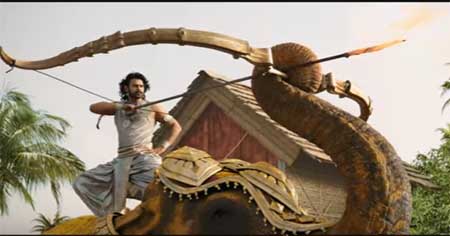 * ఏనుగు తన తొండంతో విల్లు పట్టుకుని ఉంటే ప్రభాస్ బాణం వేసే సీన్ గుర్తుందా..? ఏనుగుపై నిట్టనిలువుగా నిలబడటం అసాధ్యం..కానీ బాహుబలి అలాగే నిలబడి బాణం వేస్తాడు..సరిగా గమనిస్తే ప్రభాస్ ఏనుగు మీద నిలబడి ఉన్నట్లు ఉండదు. కొంచెం పక్కగా నిలబడినట్లు ఉంటుంది.