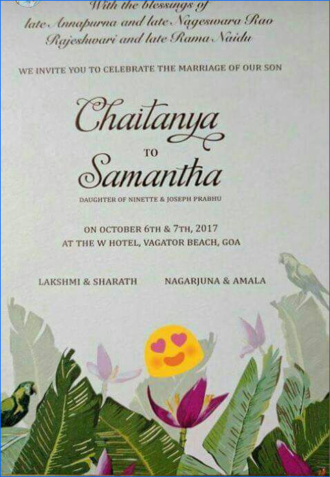 As per the card, the wedding will take place at The W Hotel, Vagator Beach in Goa on 6th and 7th. Nagarjuna and Amala couple and Lakshmi and Sharath couple invite guests for the wedding ceremony.