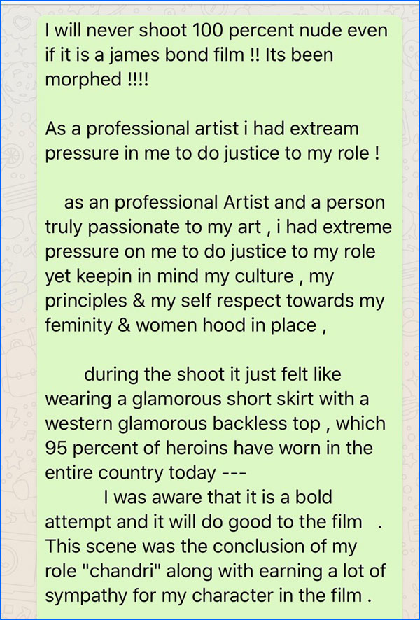 Sanjana has given her clarity on this saying, the pictures leaked on net were morphed and she hadn't acted unclothed for Dandupalya 2 (Dandupalyam 2 in Telugu). In her statement, Sanjana said, "I will never shoot 100 per cent n**e even if it is a James Bond film!! It's been morphed!!!!" Sanjana also posted original pictures from shooting spot while canning the jail episodes. Here is Sanjana's full statement: