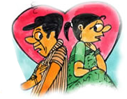 “అబ్బే... కాదండి... అదీ... అదీ... మేమిద్దరం ఫ్రెండ్స్ మండీ....చదువుకుందామని ఇలా పార్క్ కి వచ్చామని.... ఛఛ... చదువుకోవడానికి కాదండి కాలక్షేపం కోసం ఇలా వచ్చామండి... అసలు మేము ప్రేమికులమే కాదండి....” భయంగా, కంగారుగా చెప్పాడు అబ్బాయి.
