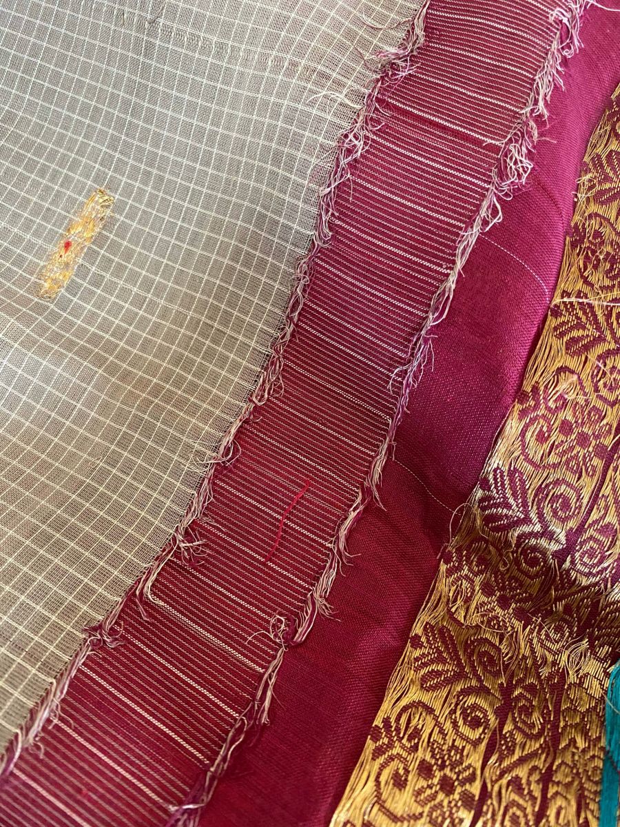 (A vintage kuttu saree that is almost 30 years old. It still remains in tact.)