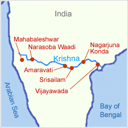 1. మహాబలేశ్వర పర్వతం మీద గోముఖం నుండి సన్నని ధారగాకృష్ణానది అవతరించింది. అక్కడ నుంచి దాదాపుగా 1400 కిలోమీటర్లు సాగే కృష్ణానది ప్రయాణం తూర్పు తీరంలో ఆ నది పేరుతోనే ఏర్పడిన కృష్ణాజిల్లాహంసలదీవిలో సాగర సంగమంతో ముగుస్తుంది.