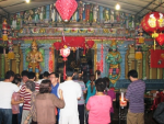 దేవుడి విగ్రహానికి కుడివైపున పూజారి ఉంది పూజాలు నిర్వహిస్తూ ఉంటాడు. ప్రదక్షిణ విధానంగా దేవుని పూజా ద్రవ్యాలు సమర్పిస్తూ హారతి పడతాడు. ఈ కార్యక్రమం పూజారి దేవునికి కుడివైపున ఉన్నప్పుడే సాధ్యమవుతుంది. ఈ స్థితిలో భక్తులు దేవుడికి ఎదుట ఎడమ ప్రక్కన ఉండాలి అలా ఉన్నప్పుడు దైవమూ, అర్చనా కార్యక్రమాలు స్పష్టంగా కనబడతాయి. అర్చన సందర్భంలో భక్తులు అధికంగా ఉంటే ఈ పద్ధతి కుదరదు. దైవానికి కుడి, ఎడమ ప్రక్కల భక్తులు చేరిపోవలసి వస్తుంది. దానిని దోషంగా పరిగణించకూడదు. అవసరసమయంలో అనుకూలతను అనుసరించుమని చెప్పారు పెద్దలు.