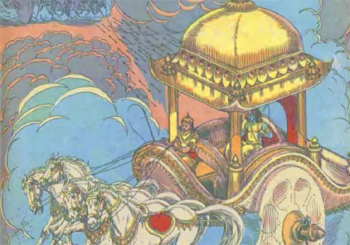 ఆ తరువాత రావణుడు నల్లటి గుర్రాలు కట్టి ఉన్న తన రథం మీద యుద్ధ భూమికి తీవ్రమైన వేగంతో వచ్చాడు.