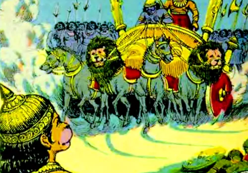 గరుగ్మంతుడు ఎలా వచ్చాడో అలా తన బంగారు రెక్కలను ఊపుకుంటూ సముద్రం మీద నుండి వెళ్ళిపోయాడు.