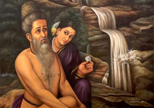 ఆ సమయంలో చల్లని మలయవాయువు ఆ అప్సరసకు తోడయి ఆ మునికి మైమరపు కలిగించేది. అది అప్పుడు పూచిన పువ్వులు తెచ్చి ముని ముందువంగి ఉంచేది. వీణమీటుతూ, శృంగార కీర్తనలు పాడేది. అప్పుడప్పుడు తన చేతులు తగిలేట్టుగా వంగి ముని పాదాలకు నమస్కరించి లేచి చిరునవ్వుతో చూసేది. ఆ విలాసాలకూ, వికారాలకూ ముని తపోదీక్షకు స్వస్తి చెప్పి మదనవిలాస దీక్షకు సంసిద్ధుడయిపోయాడు. ఒకరోజు ఆయన "సుందరీ! నా మనసు దొంగిలించినదానవు. శిక్ష నా కౌగిటిలో నిన్ను బంధించడం" అని అనగా.. ఆ దేవవేశ్య "స్వామీ! మీ మాటకి ఎదురుచెప్పగలనా?" అని దగ్గరగా వచ్చింది. ఇంకేముంది ముని ఆమెతో సుఖాలు అనుభవిస్తూ కొన్ని సంవత్సరాలు వెళ్లించాడు.