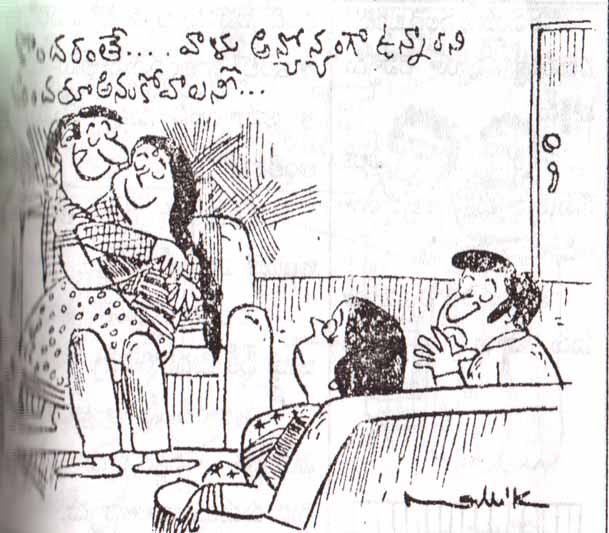 వాళ్ళందరూ ఒక్కసారిగా నాలుకలు కొరుక్కుని (ఎవరివివాళ్ళే) నా తలని తంటాలుపడి గదిలోకి తోశారు.