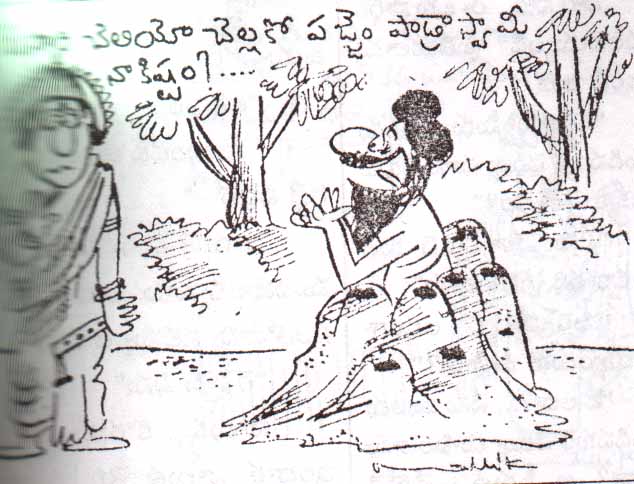 "ఇదివరకు రామంజనేయ యుద్ధం నాటకంలో నువ్వుగాని ఆంజనేయుడి వేషం వేసేవాడివేమిటోయ్...ఆ...?"