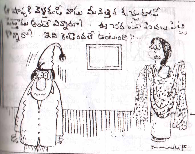 "నువ్వేం రానక్కరలేదుగానీ-చెప్పేది శ్రద్దగా విను... ఈ జూస్ ఒకటవ తేదికి మావాడికి మూడు నిండి నాలుగువస్తుంది"
