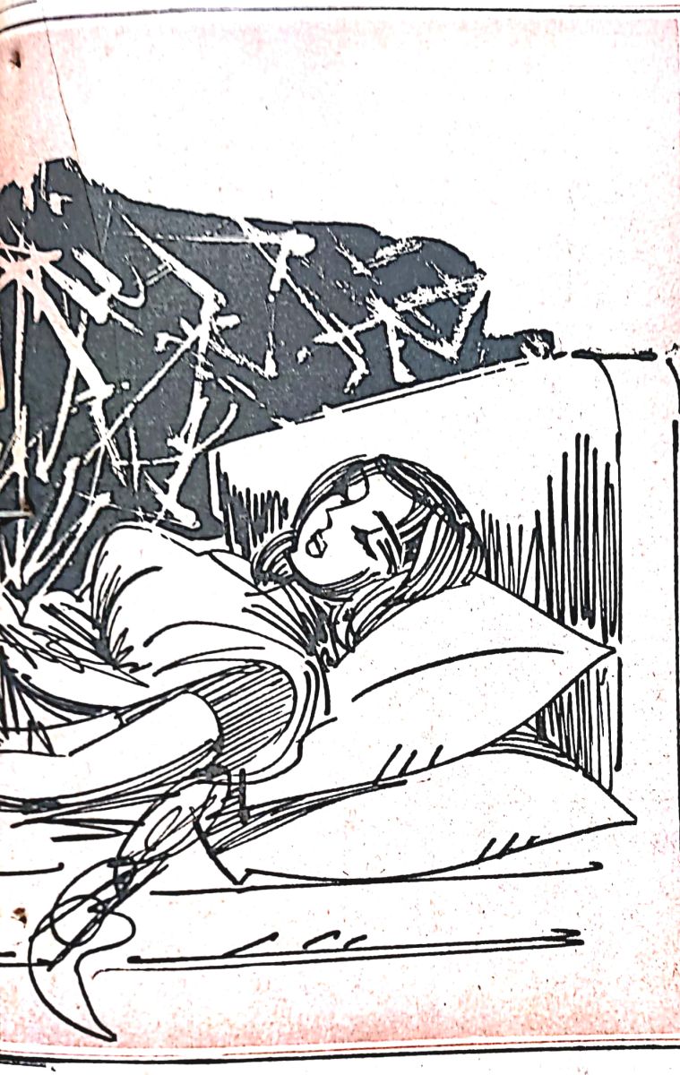 చాలాసేపు పెనుగులాడి , బలవంతాన కళ్ళు తెరిచింది. ఏమిటో అయోమయంగా వున్న మగత ఆమెను భయపెట్టింది. కొద్దిగా తెలివి రాంగానే దేనికోసమో తడుము కుంటున్నట్టు చెయ్యెత్తి చుట్టూ వెదక సాగింది. కళ్ళు పూర్తిగా తెరవ కుండానే.