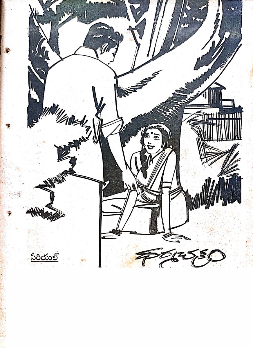 "అమ్మ ఎక్కడికీ వేళ్ళదే!' ఆలోచనతో నిలబడిన అతడికి కిటికీ లో నుండి ఆ సంధ్య చీకటి లో రెండు మానవాకారాలు-- ఒక పురుషుడు , స్త్రీ -- ఏదో మాట్లాడుకుంటూన్నట్టు కనిపించింది.