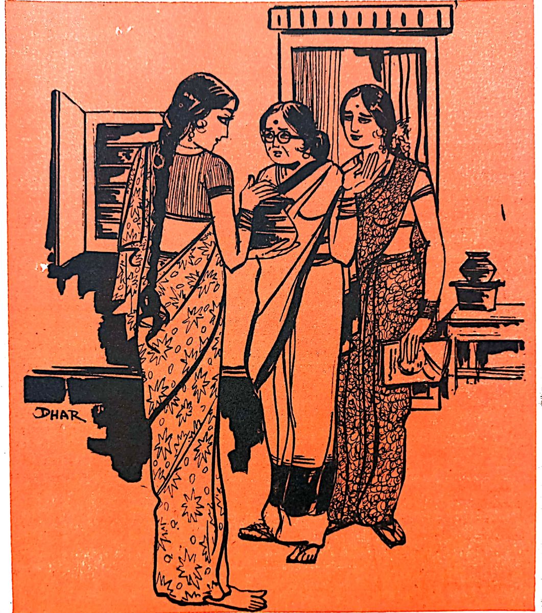 "అందరి కోసం మాన సంతోషాలు మానుకుంటామా నాయనా" అంది రాజమ్మ. "ఈ విషయంలో మీకు తెలియదు అత్తయ్య గారూ మీరూరుకొండి" అన్నాడు గోపాలం చిరాకుగా -- "నాకెందుకు నాయనా -- అయినా మీరూ మీరూ చూసుకోండి. పెద్దదాన్ని ఏదో చెప్పాను అనక మీ యిష్టం. రేపు మీ అన్నయ్య ఆరోగ్యం కుదుటపడి ఇంటికి వస్తే ఈ వేడుక అప్పటికి ఉండొద్దూ. ఎప్పటి అందం అప్పటిది."