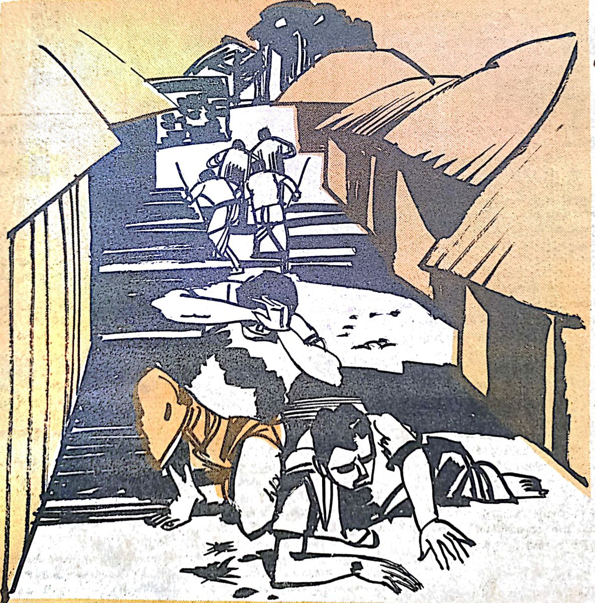 'ఏమయింది? ఏమయింది? 'ఎవరో ఇద్దరు ఖూనీ! బరుకుటారో, లేదో పాపం! ' ప్రపంచం నాశనమై పోతుంది. హత్యలకు కారణ మక్కరలేదు. ఎవరెక్కడ ఎంత చిన్న విషయానికి నరుక్కుని చచ్చిందీ సంభాషణలు!