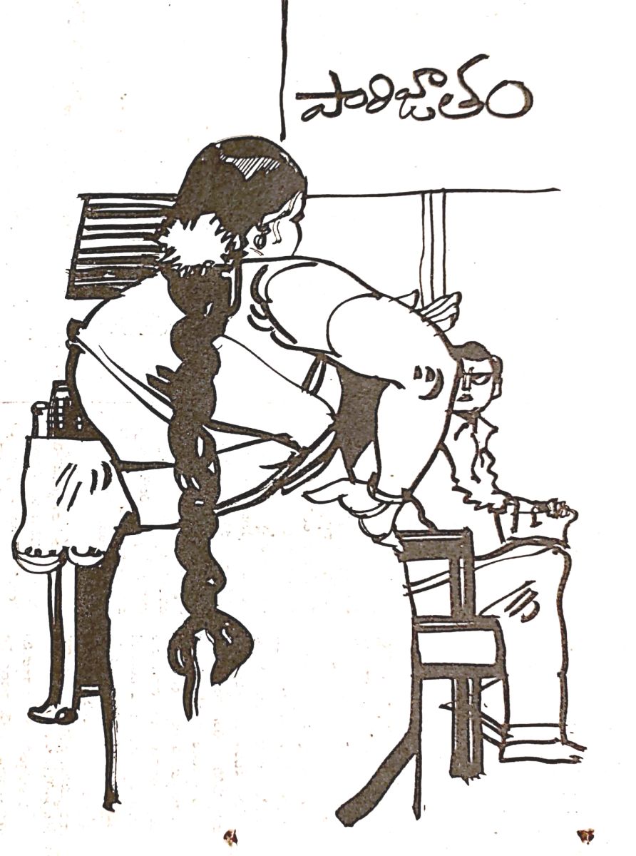 "కంగారు పడకండి, నాన్నగారూ! సత్యను డాక్టర్ వాణీ శారద దగ్గరకు తీసుకుపోతాను. పొద్దుటి కంతా తగ్గిపోతుంది." బ్రహ్మయ్యగారిని పారిజాతం 'నాన్న గారూ' అనే పిలుస్తుంది.
