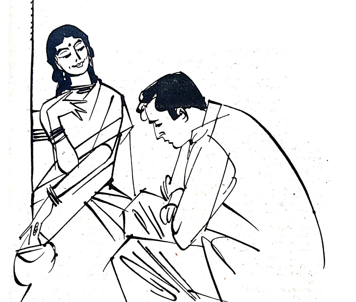 "అదే....ఉత్తరం విషయమేమిటో కనుక్కుందామని " అని పైట చెరుగు నోటి కడ్డు పెట్టుకుంది.