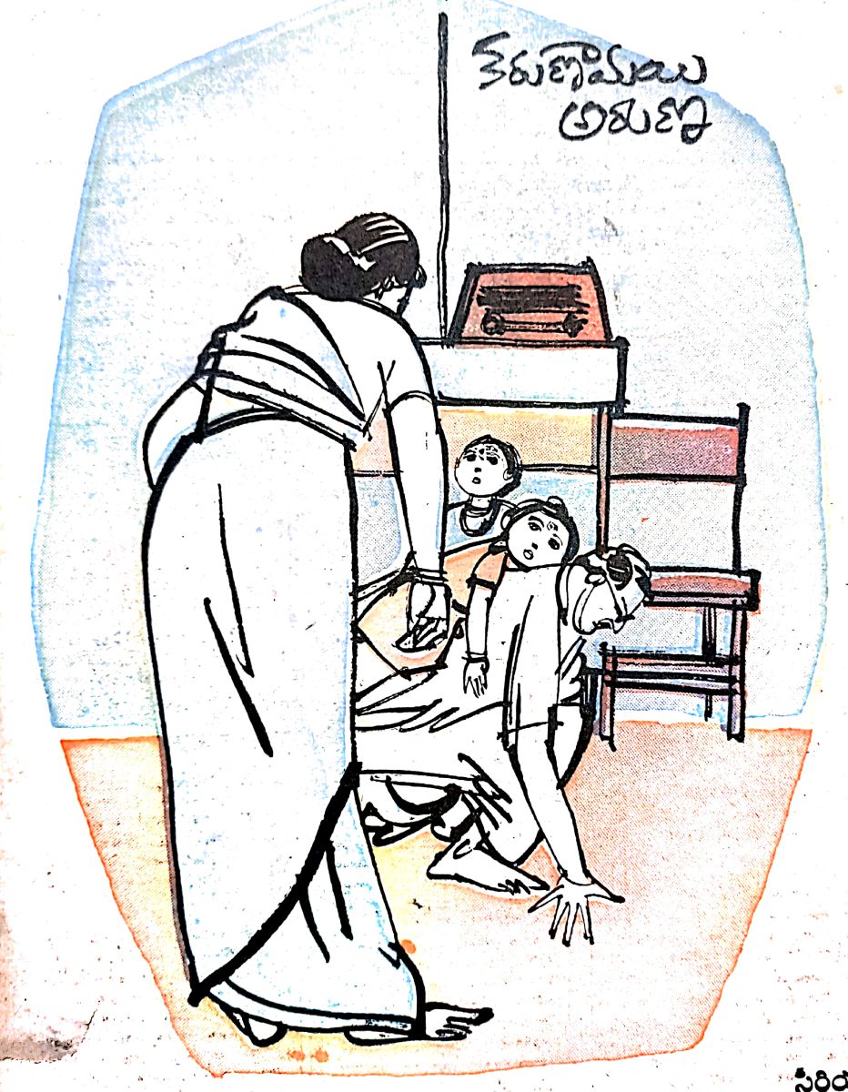 "అహహ! అది కాదె నేననేది. ఏదో దిక్కూ, మొక్కూ లేని పిల్ల. జాలిదలిచి పెంచుకుంటూన్నామనుకో! అందరూ చేరి దానికి పెట్టారుగా పేరు అరుణ అని? దానికా పేరు అలాగే ఉండనీ! నా మనుమరాలికి మాత్రం నాపేరే పెడితే నా ప్రాణానికి హాయిగా ఉంటుందే!" అంటూ జ్ఞానాంబిక బ్రతిమాలింది. ప్రాధేయపడింది.