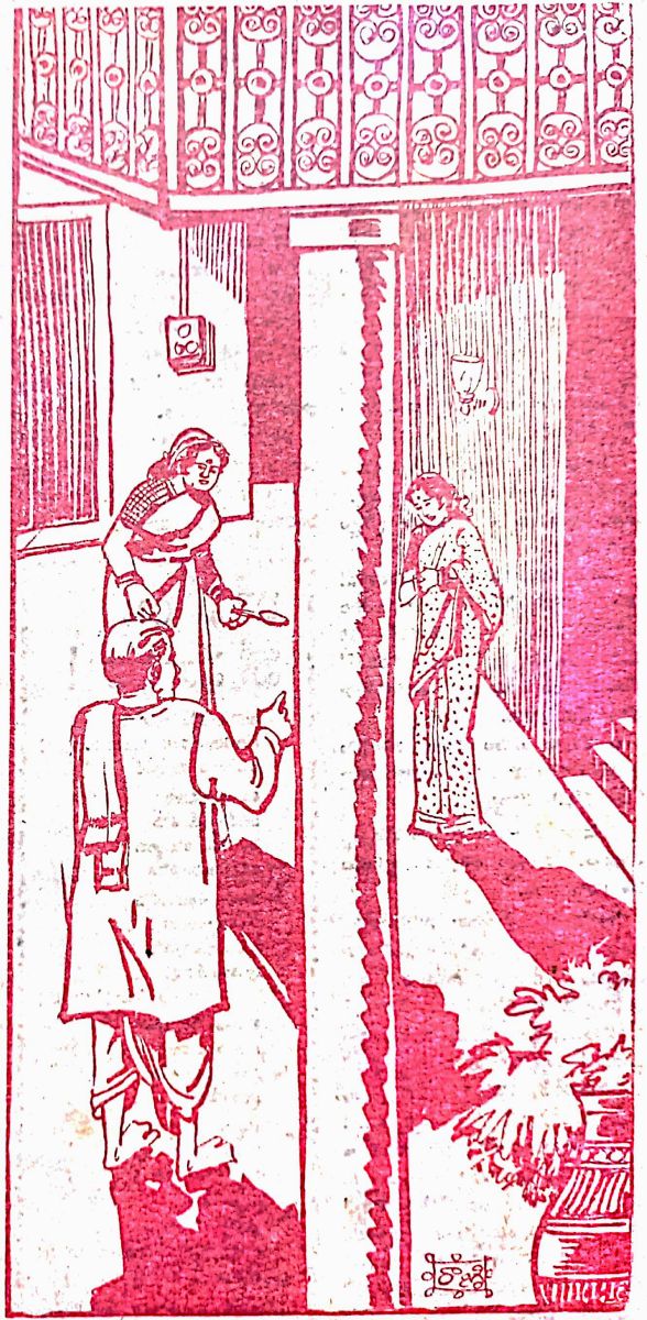 'శాంతా' అని బిగ్గరగా అరుస్తూ యింటి లోపలికి వెళ్ళారు. పుల్లయ్య వెళ్ళిపోగానే శాంత మేడ మీద గల తన గదిలోకి వెళ్ళింది. ఆ పిలుపులో కాఠిన్యానికి భయపడింది ఆమె. అలా భయపడితే తను తలచిన కార్యంనేరవేరడం కష్టమని ఊహుస్తూ లేని ధైర్యాన్ని నటిస్తూ క్రిందకు దిగింది.