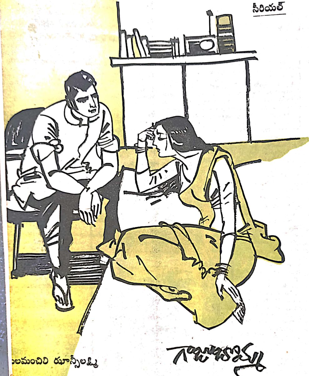 'ఎంత మధురం ఇతని మనస్సు! కరుణ అదృష్ట వంతురాలు! ఇంతమంచి అన్నయ్య లేందరి కుంటారు? మనస్సు కెంతో చేరువగా వస్తుందతని ప్రవర్తన! ఆత్మీయత వినిపిస్తుందా కంఠనా! పరిచయం తప్ప మరేదీ లేని నా పట్ల తన కెందు కింత శ్రద్ధ!?" ఎందుకో ఆ ప్రశ్న ఆమెని కలవర పెట్టింది. ఆలోచన లకి స్వస్తి చెప్పి గీతలోకి వంగిపోయింది.