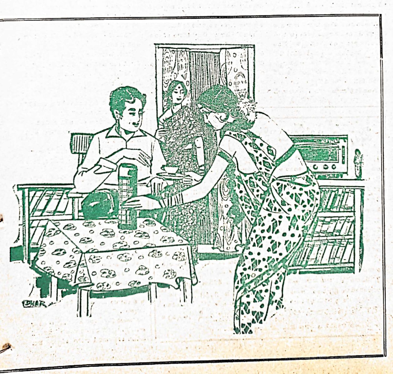 "బాగుంది పరిచయం చెయ్యడం......ఏదో....అవునా....అంతేనా అంటూ" అన్నాడు అతి సీరియస్ గా జగపతి. తెచ్చిపెట్టుకున్న జగపతి కోపంచూసి శాంత నవ్వింది. సునందకూడా చిరునవ్వు నవ్వింది. అక్కయ్య స్నేహితులు, కొత్తా మొహమాటం అంటూ ఏం లేకుండా, ఎంత సరదాగా మాట్లాడుకున్నారు?" అని ఆశ్చర్యపోయి "కూచోండి ఇప్పుడే కాఫీలు కలిపి తెస్తాను" అంటూ లోపలికి వెళ్ళింది రత్నం. ఇప్పుడేం వద్దని శాంతా జగపతీ ఎంత వారిస్తున్నా వినిపించుకోకుండా.