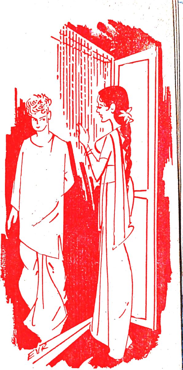 ఎంత సేపటి నుంచి అతను తనవేపు చూస్తున్నాడో? చచ్చేటంత సిగ్గు వేసింది. ఒళ్ళంతా కుంచించుకు పోయినట్లయిపోయింది. ఏవిటిలా చూస్తున్నారు?" అని అడుగుదామనుకుంది. కాని ధైర్యం చేసి అలా అడగలేక ఏవిటి మీ కాలేజీ విశేషాలు ?' అని అడిగింది.