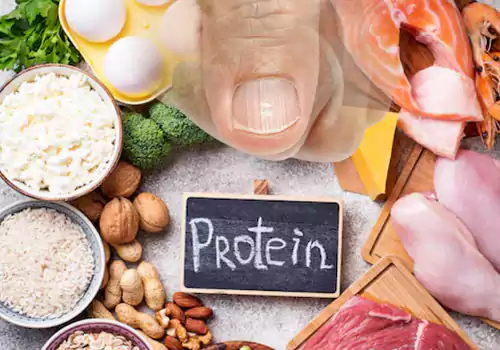 శరీరంలో ప్రోటీన్ లోపం ఉన్నప్పుడు దాని ప్రభావం మొదటగా చర్మం, వెంట్రుకలు, గోళ్లపై కనిపిస్తాయి. జుట్టు సన్నగా మారడం, జుట్టు ఎక్కువగా రాలిపోవడం, చర్మం పొడిగా, నిర్జీవంగా మారడం, గోళ్ల మీద పొట్టులాగా రావడం లేదా పెళుసుగా మారి చిన్న ఒత్తిడికే విరిగిపోవడం వంటివి జరుగుతాయి. శరీరం ముఖ్యమైన అవయవాలకు రవాణా చేస్తూ చర్మం, జుట్టు, గోళ్లకు ప్రోటీన్ సరఫరా చేయడం తగ్గిస్తుంది. అందుకే ఇలా జరుగుతుంది.