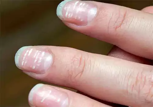 కొన్నిసార్లు మానిక్యూర్ సైడ్ ఎఫెక్ట్స్ వల్ల ఇలా సంభవించవచ్చు. ఈ పరిస్థితిలో గోరు చుట్టూ ఉన్న చర్మానికి నష్టం జరుగుతుంది. దీనిని నెయిల్ బెడ్ అని పిలుస్తారు. గోళ్లపై తెల్లటి మచ్చలు లేదా గుర్తులు కనిపించవచ్చు, ఇది గోళ్లు బలహీనపడుతున్నాయనడానికి సంకేతం.
