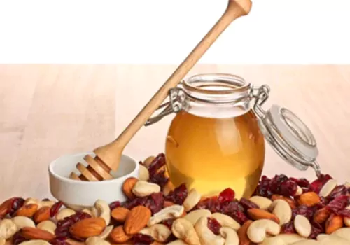 డ్రై ఫ్రూట్స్లోని పోషకాలు ఒక్క వ్యక్తిని ఆరోగ్యంగా ఉంచడంలో ఎంతగానో సహాయపడతాయి. అనారోగ్యానికి వ్యతిరేకంగా మీ శరీరాన్ని బలోపేతం చేయడానికి దోహదపడతాయి. తేనె అంటువ్యాధులతో పోరాడుతుంది. ఇది మిమ్మల్ని ఆరోగ్యంగా ఉంచుతుంది. డ్రైఫ్రూట్స్ లో కొవ్వు, కేలరీలు తక్కువగా ఉంటాయి. తేనె అనేది యాంటీఆక్సిడెంట్లు, ఇతర పోషకాలను కలిగి ఉన్న సహజ స్వీటెనర్. పోషణ,శక్తికి మూలం: తేనె పూసిన డ్రై ఫ్రూట్స్ రెండింటిలోని పోషక ప్రయోజనాలను మిళితం చేస్తాయి. వాటిలో విటమిన్లు, ఖనిజాలు, యాంటీఆక్సిడెంట్లు, డైటరీ ఫైబర్ పుష్కలంగా ఉంటాయి, అవసరమైన పోషకాల యొక్క సాంద్రీకృత మూలాన్ని అందిస్తాయి. తేనె, డ్రైఫ్రూట్స్లోని సహజ చక్కెరలు త్వరిత శక్తిని ప్రోత్సహిస్తాయి. శారీరక కార్యకలాపాల శక్తి స్థాయిలను తిరిగి నింపడంలో సహాయపడతాయి. రోగనిరోధక శక్తిని పెంచుతుంది: తేనె దాని సంభావ్య యాంటీ బాక్టీరియల్ లక్షణాలకు ప్రసిద్ధి చెందింది. డ్రైఫ్రూట్స్ లోని విటమిన్లు, ఖనిజాలతో కలిపినప్పుడు, ఇది మొత్తం రోగనిరోధక వ్యవస్థకు సపోర్టు చేస్తుంది. శరీరాన్ని ఇన్ఫెక్షన్ నుండి రక్షించడంలో సహాయపడుతుంది.వాటి పోషకాలు జింక్, సెలీనియం, పొటాషియం, కాపర్ , మెగ్నీషియం. అవి విటమిన్లు B, C , ఐరన్ కు మంచి మూలం. జీర్ణక్రియను మెరుగుపరుస్తుంది: డ్రై ఫ్రూట్స్ లో ఫైబర్ పుష్కలంగా ఉంటుంది. ఇది జీర్ణక్రియలో సహాయపడుతుంది. సాధారణ ప్రేగు కదలికలను ప్రోత్సహిస్తుంది. డ్రై ఫ్రూట్స్ని తేనెతో కలిపి తీసుకోవడం వల్ల జీర్ణవ్యవస్థ ఆరోగ్యంగా ఉంటుంది. హృదయనాళ ఆరోగ్యం: ఎండుద్రాక్ష, ఆప్రికాట్ వంటి డ్రైఫ్రూట్స్ తేనెతో కలిపి తీసుకుంటే గుండె ఆరోగ్యానికి దోహదం చేస్తుంది. ఇవి పొటాషియం, ఫైబర్,ఫినాలిక్ సమ్మేళనాలు వంటి పోషకాలను కలిగి ఉంటాయి, ఇవి హృదయ ఆరోగ్యానికి తోడ్పడతాయి. యాంటీఆక్సిడెంట్ రక్షణ: తేనె, డ్రైఫ్రూట్స్లో యాంటీ ఆక్సిడెంట్లు ఉంటాయి. ఇది ఆక్సీకరణ ఒత్తిడిని ఎదుర్కోవడంలో సహాయపడుతుంది. శరీరంలో హానికరమైన ఫ్రీ రాడికల్స్ను తటస్థీకరించడం ద్వారా దీర్ఘకాలిక వ్యాధుల ప్రమాదాన్ని తగ్గిస్తుంది బరువును నిర్వహించడానికి: డ్రై ఫ్రూట్స్ శక్తికి మంచి మూలం. తేనె బరువును తగ్గించడంలో సహాయపడుతుంది. బాదం, ఖర్జూరం, అంజీర, ఎండుద్రాక్ష మొదలైన డ్రై ఫ్రూట్స్లో విటమిన్లు, మినరల్స్, యాంటీ ఆక్సిడెంట్లు పుష్కలంగా ఉంటాయి. ఇవి రోగనిరోధక శక్తిని పెంచడానికి, హిమోగ్లోబిన్ స్థాయిలను పెంచడానికి, దృష్టిని మెరుగుపరచడంలో సహాయపడతాయి.