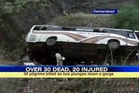 At least 30 people were killed and 14 others injured on early Saturday when a private bus carrying pilgrims to Shirdi fell off a river bridge on the outskirts of Osmanabad town, around 450 km from Mumbai, police said.