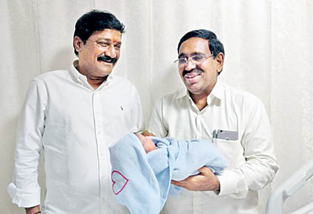 ఏపీ మానవ వనరుల అభివృద్ధి శాఖ మంత్రి గంటా శ్రీనివాసరావు, పురపాలక శాఖ మంత్రి నారాయణ ఇద్దరూ తాతలయ్యారు. మంత్రి నారాయణ కుమార్తెకు రెండేళ్ల క్రితం వివాహం జరిగిన విషయం తెలిసిందే. అయితే ఇప్పుడు ఆమె ఓ మగబిడ్డకు జన్మనిచ్చింది. హైదరాబాద్‌లోని ఓ వైద్యశాలలో మగబిడ్డ పుట్టాడు. మనవడ్ని చూసేందుకు అక్కడికి వెళ్లిన ఇద్దరు మంత్రులు బిడ్డను చూసి ఆనందం వ్యక్తం చేశారు. ఇద్దరు రాష్ట్ర మంత్రులు ముద్దుల మనవడిని ఎత్తుకుని మురిసిపోయారు.