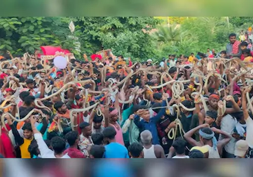 బిహార్ సమస్తిపూర్లోని సింధియా ఘాట్‌లో వందల మంది యువకులు నాగుపాములను మెడలో వేసుకొని ఊరేగింపుగా వెళ్లిన వీడియో వైరలవుతోంది. పిల్లలు సైతం పామును చూసి భయపడకుండా భజనలు చేస్తూ నాగదేవత ఆలయానికి వెళ్లారు. నాగ పంచమి సందర్భంగా స్థానికులు పాముల ఉత్సవం నిర్వహించినట్లు తెలుస్తోంది. అయితే, గత 200 ఏళ్లుగా ఈ సంప్రదాయాన్ని జరుపుకుంటున్నట్లు వారు చెబుతున్నారు.