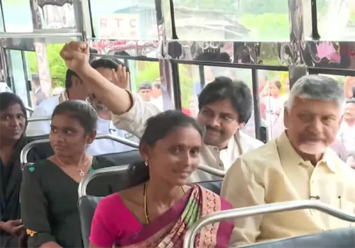 ఏపీలో మహిళలకు ఉచిత బస్సు ప్రయాణ సౌకర్యం కల్పించే స్త్రీ శక్తి’ పథకాన్ని ముఖ్యమంత్రి చంద్రబాబు ప్రారంభించారు. ఈ క్రమంలో ముఖ్యమంత్రి డీప్యూటీ సీఎం పవన్ కల్యాణ్, మంత్రి నారా లోకేశ్ స్వయంగా ఆర్టీసీ బస్సులో ప్రయాణించి ఉచిత బస్సు ప్రయాణానికి శ్రీకారం చుట్టారు. ఇచ్చిన హామీని నిలబెట్టుకుంటూ మహిళల కోసం ఈ కీలక పథకం నేటి నుంచి అమలు చేస్తున్నారు. ఈ కార్యక్రమం కోసం ఉండవల్లి నుంచి తాడేపల్లి, కనకదుర్గ వారధి మీదుగా విజయవాడ బస్ టెర్మినల్ వరకు చంద్రబాబు, పవన్, లోకేశ్ బస్సులోనే వెళ్లారు. వీరితో పాటు బీజేపీ రాష్ట్ర అధ్యక్షుడు మాధవ్, పలువురు ఇతర కూటమి నేతలు కూడా ఈ ప్రయాణంలో పాల్గొన్నారు. మహిళా ప్రయాణికులతో కలిసి ప్రయాణిస్తూ వారి సంతోషంలో పాలుపంచుకున్నారు.
