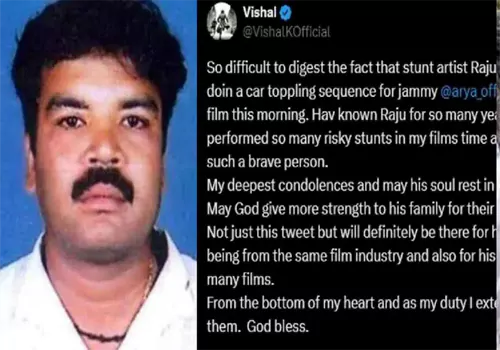 స్టంట్ మాస్టర్ రాజు మృతి పట్ల హీరో విశాల్ సంతాపం ప్రకటించారు. ఆయన కుటుంబానికి అండగా ఉంటానని హామీ ఇచ్చారు. రాజు ధైర్యవంతుడని కొనియాడిన విశాల్, తాను నటించిన అనేక చిత్రాల్లో ఆయన సాహసోపేతమైన స్టంట్స్ చేశారని గుర్తు చేసుకున్నారు. అయితే, కారుతో స్టంట్స్ చేస్తుండగా రాజుకు హార్ట్ అటాక్ వచ్చిందని మరికొన్ని నివేదికలు చెబుతున్నాయి. ఈ విషయంపై వెట్టువన్ మూవీ మేకర్స్ నుంచి అధికారిక ప్రకటన రావాల్సి ఉంది.