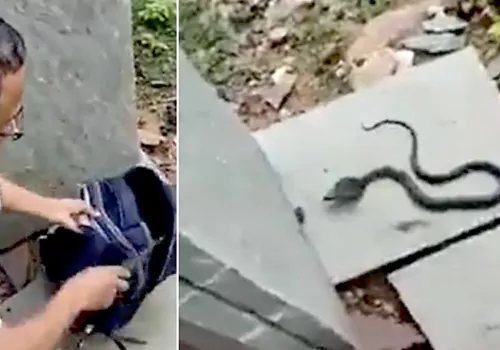 వెంటనే పాముల నర్సయ్యలాంటి హీరోకి ఫోన్ చేశారు. ఆయన మెరుపు వేగంతో వచ్చాడు. ఆయన మరో మాస్టరు సహాయంతో బ్యాగ్ని నెమ్మదిగా స్కూలు కి కొంత దూరం తీసికెళ్లి బాగా చెట్లు ఉన్న ప్రాంతంలో బ్యాగ్ని పూర్తిగా తెరిచి అలా పడేశారు. అంతే అందులో అప్పటిదాకా విశ్రాంతి తీసుకుంటున్న కోబ్రా కాస్తా ఎందుకు విసిగిస్తారని ఠపీమని తలెత్తి చూసింది. మాస్టారు కర్రతో కనిపించేసరికి అది కాస్తా చెట్లలోకి పారిపోయింది. అది చిన్నది కాదు ..కాటేస్తే ప్రాణాలే పోయేవి. పిల్ల అదృష్టవంతురాలు అన్నా రంతా!