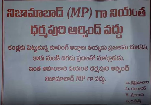 గత కొంత కాలంగా జగిత్యాల జిల్లాలో బీజేపీ సీనియర్లు విమర్శలు, వ్యాఖ్యలు చేస్తున్న సంగతి తెలిసిందే. ఇప్పుడు ఏకంగా కరపత్రాలు ముద్రించి సంచలనానికి తెరలేపారు. వచ్చే పార్లమెంటు ఎన్నికలలో ధర్మపురి అర్వింద్ కు పార్టీ టికెట్ ఇవ్వవద్దని అధిష్ఠానాన్ని కోరుతూ ముద్రితమైన ఆ పాంప్లెట్లు సోమవారం (ఫిబ్రవరి 19) దిపపత్రికలతో పాటు పంపిణీ అయ్యాయి. కళ్లకు చలవ కళ్లద్దాలు తీయడు, కారు దిగి ప్రజలతో మాట్లాడని ధర్మపురి నియంత, అహంకారి.. అటువంటి వ్యక్తి నిజామాబాద్ ఎంపీగా వద్దు అంటూ ఆ కరపత్రాల్లో పేర్కొన్నారు. కృష్ణమాచారి, పి.గంగాధర్, కే. శ్రీనివాస్, బి. రమేష్ పేర్లతో ముద్రితమైన ఈ కరపత్రాలు ఇప్పుడు నిజామాబాద్ నియోజకవర్గంలోనే కాకుండా రాష్ట్ర వ్యాప్తంగా హాట్ టాపిక్ గా మారాయి.