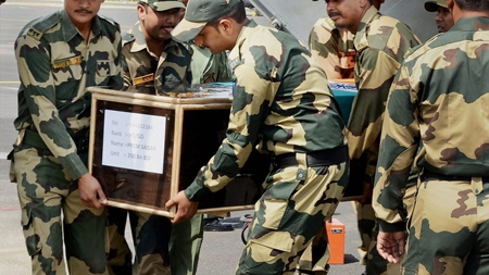 పాకిస్థాన్ సైనికులు జరిపిన దాడుల్లో ప్రేమ్ సాగర్, పరమజిత్ సింగ్ అనే ఇద్దరు జవాన్లు మరణించిన సంగతి తెలిసిందే. అంతేకాదు పాక్ సైనికలు చేతిలో అతి దారుణంగా చిత్రవధ చేయింపబడ్డారు. అయితే ఇప్పుడు జవాను ప్రేమ్సాగర్ అంత్యక్రియలు నిర్వహించేందుకు ఆయన కుటుంబం నిరాకరించింది. యూపీ సీఎం యోగి ఆదిత్యనాథ్ తమ ఇంటికి వచ్చి ప్రేమ్సాగర్ కు నివాళులు అర్పిస్తే కానీ దహన సంస్కారాలు చేయబోమని తెలిపారు. అంతేకాదు.. జవాను పిల్లలకు ప్రభుత్వ ఉద్యోగం కల్పించాలని డిమాండ్ చేశారు. దీనికి స్పందించిన యోగి జవాను కుటుంబ సభ్యులతో ఫోన్లో మాట్లాడారు. ఈ సందర్భంగా ఆయన 13వ రోజు నిర్వహించే కర్మకు తప్పకుండా హాజరవుతానని, ప్రేమ్కుమార్తెకు ఉద్యోగం కల్పిస్తానని హామీ ఇచ్చారు. సీఎం హామీ ఇచ్చిన అనంతరం... అధికార లాంఛనాల మధ్య జవాను అంత్యక్రియలను నిర్వహించారు.
