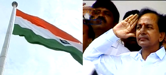 భారీ జాతీయపతాకావిష్కరణ చేసిన కేసీఆర్