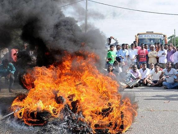 The workers blocked the Bengaluru-Mysuru highway getting the traffic to a standstill. They burnt effigies of Siddaramaiah and Congress leader in the Lok Sabha, Mallikarjuna M Kharge. Commercial complexes were also shut in some areas as the party workers had called for a bandh.