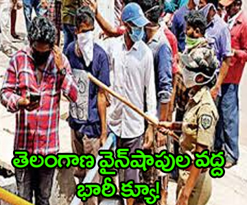 తెలంగాణ వైన్షాపుల వద్ద భారీ క్యూ! పండుగ చేసుకుంటున్న మద్యం ప్రియులు!