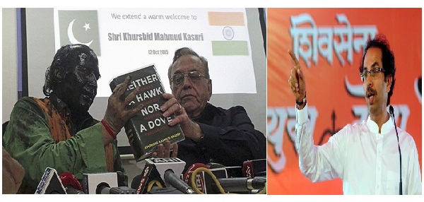 పాకిస్తాన్ మాజీ విదేశాంగ మంత్రి ఖుర్షిద్ మమ్మూద్ కసౌరి వ్రాసిన “నైదర్ ఏ హాక్ నార్ ఏ డోవ్” అనే పుస్తకాన్ని ముంబైలో ఆవిష్కరించాలనుకొనప్పుడు అందుకు శివసేన తీవ్ర అభ్యంతరం వ్యక్తం చేసింది. ఒకపక్క భారత్ పై దాడులు చేస్తూ మరోపక్క దేశం నడిబొడ్డున ఇటువంటి కార్యక్రమాలు నిర్వహించడానికి అనుమతించబోమని విస్పష్టంగా చెప్పింది. ఒకవేళ పుస్తకావిష్కరణకు ప్రయత్నిస్తే తప్పకుండా అడ్డుకొంటామని హెచ్చరించింది. కానీ ఆ కార్యక్రమానికి తమ ప్రభుత్వం పూర్తి భద్రత కల్పిస్తుందని మహారాష్ట్ర ముఖ్యమంత్రి దేవేంద్ర ఫడ్నవీస్ భరోసా ఇవ్వడంతో రెండు రోజుల క్రితం ముంబైలో ఆ పుస్తకావిష్కరణ కార్యక్రమం నిర్వహించారు. కానీ చెప్పినట్లుగానే శివసేన కార్యకర్తలు కొందరు పోలీస్ భద్రతావలయాన్ని దాటుకొనివచ్చి ఆ కార్యక్రమంలో ముఖ్య అతిధిగా పాల్గొన్న భారత మాజీ దౌత్యవేత్త సుధీంద్ర కులకర్ణి మొహం మీద నల్ల రంగు పోశారు. అయినప్పటికీ ఆయన వెనుకంజ వేయకుండా మొహానికి ఉన్న ఆ నల్లరంగు కడుగుకోకుండానే పుస్తకావిష్కరణ కార్యక్రమాన్ని పూర్తి చేసారు.