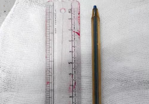 తోటి విద్యార్థులతో పందెం కాసి పెన్ను మింగేసిన విద్యార్థి ఉదంతమింది. అలా పెన్ను మింగేసిన మూడేళ్ల తరువాత తీవ్రమైన కడుపునొప్పితో ఆస్పత్రి పాలయ్యాడు. స్కానింగ్ లో కడుపులో పెన్ను ఉందని గుర్తించిన వైద్యులు శస్త్రచికిత్స అవసరం లేకుండా పెన్ను బయటకు తీసి అతడి ప్రాణాలు కాపాడారు. వివరాల్లోకి వెడితే..