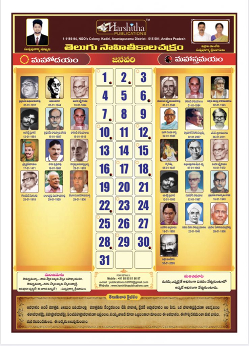 తెలుగు సాహితీ కాలచక్రం క్యాలెండర్ కావాలని తలిచినవారు 9492087089 కి కాల్ చేసి షణ్ముఖను సంప్రదించండి.