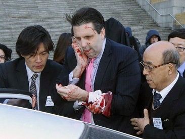The US Ambassador to South Korea, Mark W Lippert was badly injured in an attack by a miscreant, while he was addressing the members of Korea Council for Reconciliation and Co-operation at a meeting held at Seoul on Thursday. The miscreant, who secured entry to the meeting, has attacked the US ambassador Mark W Lippert with a knife while he was giving a speech. Mark was badly injured in the attacks. He had deep cut on his face and on left wrist. The members present on the stage have come to his rescue and saved him from the miscreant attack.