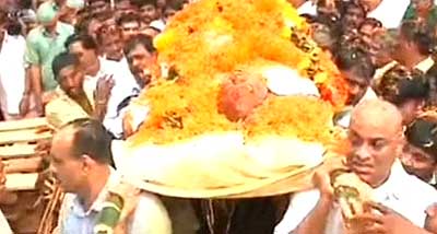 Telugu Desam chief N Chandrababu Naidu led scores of party leaders, workers and admirers in the funeral procession after which a gun salute was given by the police.