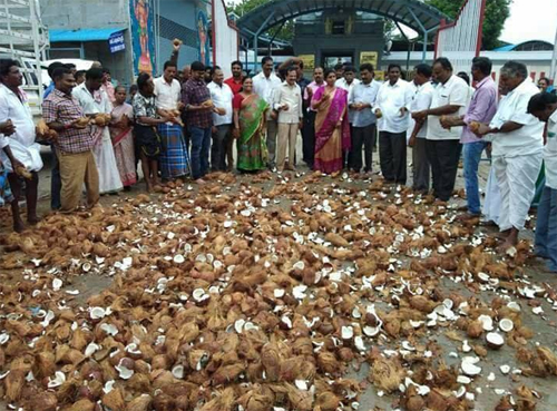 రోజా కొబ్బరికాయ కొట్టింది.. పాదయాత్ర ఆగింది..