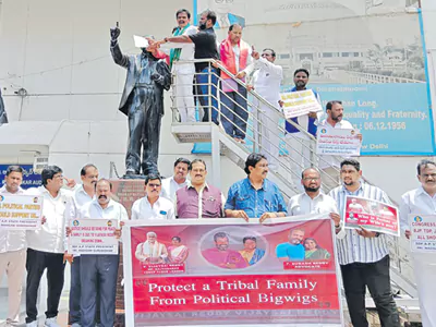గిరిజన మహిళ అయిన తన భార్య శాంతిని ట్రాప్ చేసి, విజయసాయిరెడ్డి చట్ట వ్యతిరేకంగా వివాహేతర సంబంధం పెట్టుకున్నాడని ఆరోపిస్తూ శాంతి భర్త మదన్మోహన్ రాజీలేని పోరాటం చేస్తున్నారు. తన భార్యతో సంబంధం పెట్టుకుని, అక్రమంగా బిడ్డను కన్న రాజ్యసభ ఎంపీ విజయసాయిరెడ్డి, మాజీ ప్రభుత్వ న్యాయవాది పోతిరెడ్డి సుభాష్రెడ్డి మీద చర్యలు తీసుకోవాలని శాంతి భర్త మణిపాటి మదన్మోహన్, సోషల్ డెమోక్రటిక్ ఫ్రంట్ అధ్యక్షుడు మాదిగాని గురునాథం డిమాండ్ చేశారు. ఈ మేరకు రాష్ట్రపతి ద్రౌపది ముర్ము, ఉపరాష్ట్రపతి జగదీప్ ధన్ఖడ్లకు వారు ఫిర్యాదు చేశారు. ఈ మేరకు వారికి నాలుగు పేజీల లేఖను పంపారు. ఆ లేఖలో... ‘‘అగ్రకులానికి చెందిన రాజ్యసభ సభ్యులు విజయసాయిరెడ్డి, ప్రభుత్వ మాజీ న్యాయవాది సుభాష్రెడ్డి తమ అధికారం, ధన, కండ బలాన్ని ఉపయోగించి నా భార్య శాంతిని లోబరుచుకున్నారు. ఆమెతో సంబంధం పెట్టుకుని చట్టవ్యతిరేకంగా బిడ్డను కన్నారు. ఈ విధంగా షెడ్యూల్డ్ ట్రైబ్స్.కి చెందిన వ్యక్తిగా నాకున్న హక్కులను హరించారు. నా వైవాహిక జీవితాన్ని విచ్ఛిన్నం చేయడం ద్వారా నా హక్కులను హరించినందుకు వారిద్దరిపై ఎస్సీ, ఎస్టీ అట్రాసిటీ వేధింపుల నిరోధక చట్టం ప్రకారం చర్యలు తీసుకోవాలి. వారికి డీఎన్ఏ పరీక్షలు నిర్వహించి నా భార్యకు పుట్టిన మగబిడ్డకు తండ్రెవరో తేల్చాలి. ఈ అక్రమ సంబంధం గురించి నేను మీడియాకి బహిర్గతం చేసిన తర్వాత కొందరు వ్యక్తులు నన్ను చంపుతామని బెదిరిస్తున్నారు. తనకు సన్నిహితంగా వున్న పెద్దల పేర్లను బహిర్గతం చేశానన్న కోపంతో నా భార్య శాంతి కూడా నన్ను బెదిరిస్తూ తీవ్ర పరిణామాలు ఎదుర్కోవాల్సి వుంటుందని హెచ్చరిస్తోంది. ఆమెకు ఒకవైపు అసాంఘిక శక్తులు, మరోవైపు బ్యూరోక్రాట్లతో సన్నిహిత సంబంధాలు వున్నాయి. ప్రస్తుతం విజయసాయిరెడ్డి, పోతిరెడ్డి సుభాష్రెడ్డి, నా భార్య శాంతి.. ముగ్గురూ తాడేపల్లి పోలీస్ స్టేషన్ పరిధిలోనే నివాసం వుంటున్నారు. అందువల్ల వారిపై ఎస్సీ, ఎస్టీ ఎట్రాసిటీ చట్టం ప్రకారం తగిన చర్యలు తీసుకోవలసిందిగా పోలీసులకున ఆదేశించాలని కోరుతున్నాను’’ అని మదన్ మోహన్ పేర్కొన్నారు. అలాగే ఎంపీ విజయసాయిరెడ్డి మీద చర్యలు తీసుకోవాలని కోరుతూ ఢిల్లీ ఏపీ భవన్లోని అంబేద్కర్ విగ్రహం దగ్గర మదన్మోహన్, ఎస్సీ, ఎస్టీ, బహుజన సంఘాల ప్రతినిధులు ఆందోళన కార్యక్రమం నిర్వహించారు.