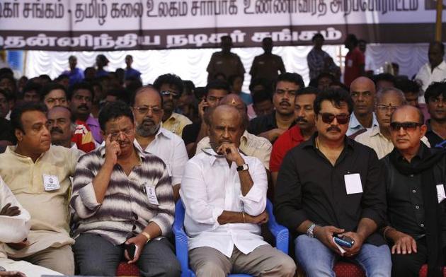Entire Tamil film industry people including super star Rajinikanth, Sarat Kumar, Vijay Kumar, Simbhu, Ajith, Arya and many others from 24 sections have participated in a one day dharna in Chennai protesting the atrocities by Sri Lanka government on Tamil people. Both DMK and ruling AIADMK parties also condemns the Sri Lankan government’s attitude and demanding for the trial of Sri Lanka President Mahinda Raja Paksa in international court for his gross violations of human rights. Leading British TV ‘Channel-4’ has recently aired the brutal killing scenes of the Sri Lanka Tamils in the hands of Army, with which the Tamil people in the state further intensifies their protests against Sri Lankan Government.