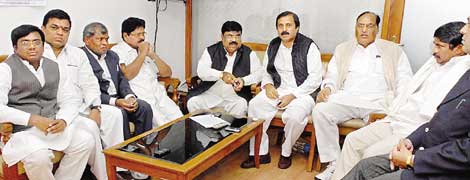 Telangana Congress leaders hold a meeting at Banjara Hills in Hyderabad to discuss and chalk out their action plan on Telangana issue. The meeting was attended by several ministers, MPs, MAs and MLCs of the Congress party. T-JAC leaders Srinivas Goud and Devisri Prasad also attend the meeting as special guests.